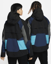 Improvise. Scavenge. Protect. Adapt. Our Nike ISPA collection helps you adapt to your environment and move comfortably within it. Using premium weather-resistant material, this jacket helps you stay prepared for wet and windy conditions. A cool mesh liner and laser cut ventilation zones help your body breathe. Pull it on and make a statement while you conquer the conditions. More Benefits - Adjustable hood and full 2-way zip design let you change up your coverage and style. Product Details - Zippered pockets - Body: 100% nylon. Panels/Back Pocket/Panels Lining: 100% polyester. - Machine wash - Imported - Shown: Black/Midnight Navy/Iron Grey/Iron Grey - Style: FB2369-010 SIZE & FIT Female model is wearing size XS and is 5'11"180cm Male model is wearing size M and is 6'3"191cm Loose fit: roomy and relaxed