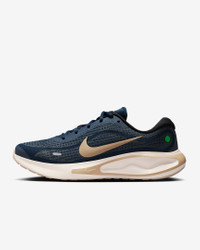 Enjoy every step, route and jaunt in the Nike Journey Run. It’ll have you striding and smiling on punishing pavements, thanks to an extra-high foam stack and supersoft ComfiRide cushioning. It's so comfortable that you'll already be looking forward to lacing 'em up again. Benefits - Engineered mesh helps your feet feel secure. - Extra cushioning in the heel and soft touch points in the tongue and collar add comfort. - Rubber outsole provides traction for your miles. Product Details - Reflective details - Not intended for use as Personal Protective Equipment (PPE) - Shown: Armory Navy/Green Strike/Pale Ivory/Desert Khaki - Style: FN0228-403