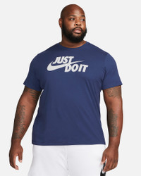 The Nike Sportswear JDI T-Shirt sets you up with soft jersey fabric and a "Just Do It." logo across the chest. Benefits - Soft fabric feels comfortable against your skin. - Motivational logo on the chest shows your love for sport. - Ribbed crew neck is durable yet comfortable. Product Details - Standard fit for a relaxed, easy feel - Fabric: Solid: 100% cotton. Heather: 50-100% cotton/0-50% polyester. - Machine wash - Imported - Note: Material percentages may vary depending on factory. Check label for actual content. - Shown: Midnight Navy/White - Style: AR5006-410 SIZE & FIT Model is wearing size M and is 6′2″187cm Standard fit: easy and traditional