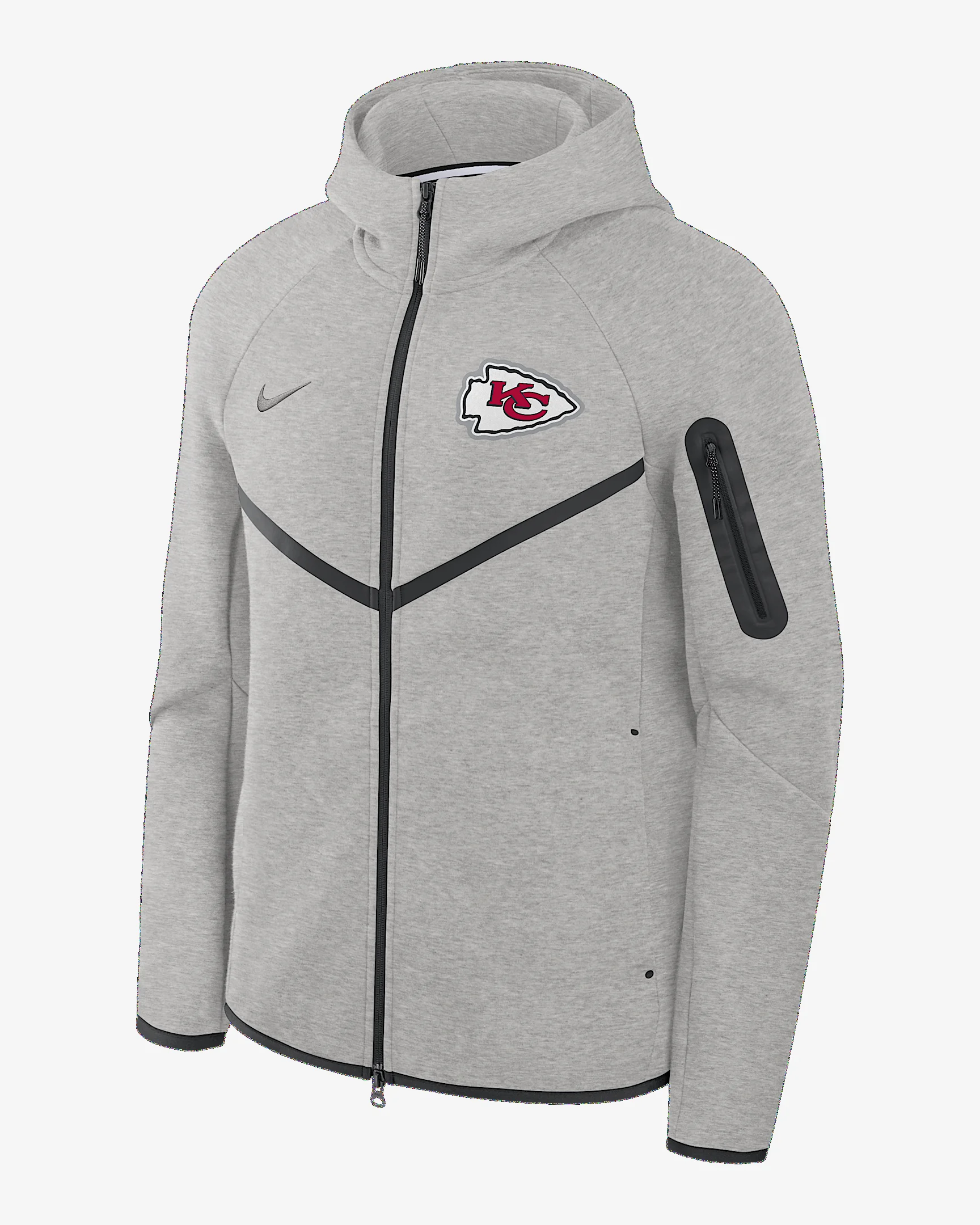 Featuring premium, heavyweight fleece fabric with a smooth feel on the inside and outside, this Tech Fleece Windrunner Jacket keeps you warm and comfortable in cold conditions as you support the Kansas City Chiefs. Product Details - Scuba hood without drawstring - Zippered pocket on left sleeve - 47% recycled polyester/42% cotton/11% organic cotton - Machine wash - Imported - Shown: Grey Heather/Black/Grey - Style: 05L4086N7G-J35