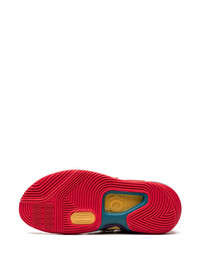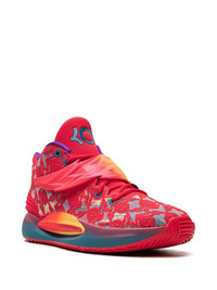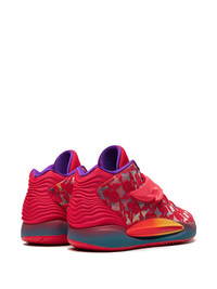KD 14 EP "Ron English 3" sneakers The American contemporary artist, Ron English, has dressed the new Nike KD 14. The sneaker features a colourful camo mesh exterior with red lace Bulbhead patterns throughout the uppers. Also, a large purple-eyed light bulb adorns the medial side and a fractal wing lace strap runs across the midfoot. Underneath, an Air Zoom unit is installed on the red and purple ombre midsole, and a light red outsole completes this special-edition sneaker. Highlights - Red - Mesh panelling - Round toe - Front lace-up fastening - Side touch-strap fastening - Branded insole - Rubber sole - Signature zoom air unit - These styles are supplied by a premium sneaker marketplace. stocking only the most sought-after footwear, they source and curate some of the most hard to find sneakers from around the world. Imported Composition Sole: Rubber 100% Lining: Fabric 100% Outer: Mesh 100%, Fabric 100%