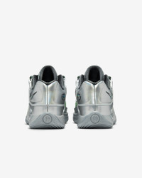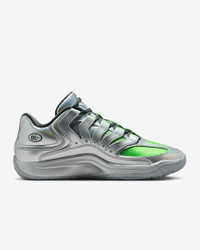 Launch your game to new heights with the KD18 “EYBL Rocket Power.” Honoring KD’s soaring trajectory from youth basketball to international icon, its chrome cage and Air Zoom cushioning help you prepare for liftoff—and splashdown. Product Details - Shown: Metallic Silver/Green Strike/Dusty Sage/Dark Smoke Grey - Style: IF2519-001