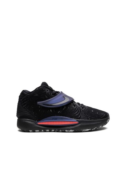 KD14 Seasonal "Aunt Pearl" sneakers Kevin Durant's new KD14 sneakers were designed to help versatile and ruthless gamers like him stay fresh throughout the game. They're constructed with multi-layer mesh and strap in the middle of the foot to help to reduce foot movement inside the shoes, while a full-length Zoom Air cushioning and Cushlon foam replenish the energy for long-lasting performance. Highlights - Pink - Signature swoosh logo detail - Contrasting panel detail - Round toe - Front lace-up fastening - Front touch-strap fastening - Ankle-length - Branded insole - Rubber sole - These styles are supplied by a premium sneaker marketplace. stocking only the most sought-after footwear, they source and curate some of the most hard to find sneakers from around the world. Imported Composition Outer: Polyester 100% Sole: Rubber 100% Lining: Fabric 100%