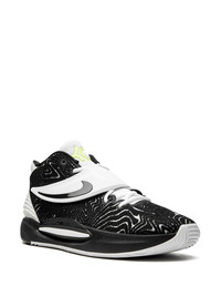 KD14 TB" Black/White" sneakers Bold and comfortable, the Nike KD 14 now arrives in a black andwhite colour scheme. This high-top sneaker is highlighted with a mixture of materials with textiles on the base while a front touch strap gives it a perfect fit. Underneath, a black midsole and a white rubber outsole finish the look. Highlights - Black/white - Faux leather - Signature swoosh logo detail - Round toe - Front lace-up fastening - Side touch-strap fastening - Branded insole - Rubber sole - These styles are supplied by a premium sneaker marketplace. stocking only the most sought-after footwear, they source and curate some of the most hard to find sneakers from around the world. Imported Composition Other fibres 100%