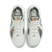 Get your game on in our retro edition of KD's signature shoes. Fresh branding levels up your off-court style, while the forefoot Zoom Air and striated graphic up your cachet. No pressing pause—get 'em while you can. Benefits - Snappy and responsive, Zoom Air cushioning helps provide a quick-off-the-ground sensation. - Flywire cables work with the laces to provide more midfoot support as you tighten them. - Multidirectional traction pattern offers great court feel. Product Details - Rubber outsole - Cutout logo on tongue - Shown: Light Silver/Steam/Mineral Spruce/Blue Jay - Style: FJ0980-001