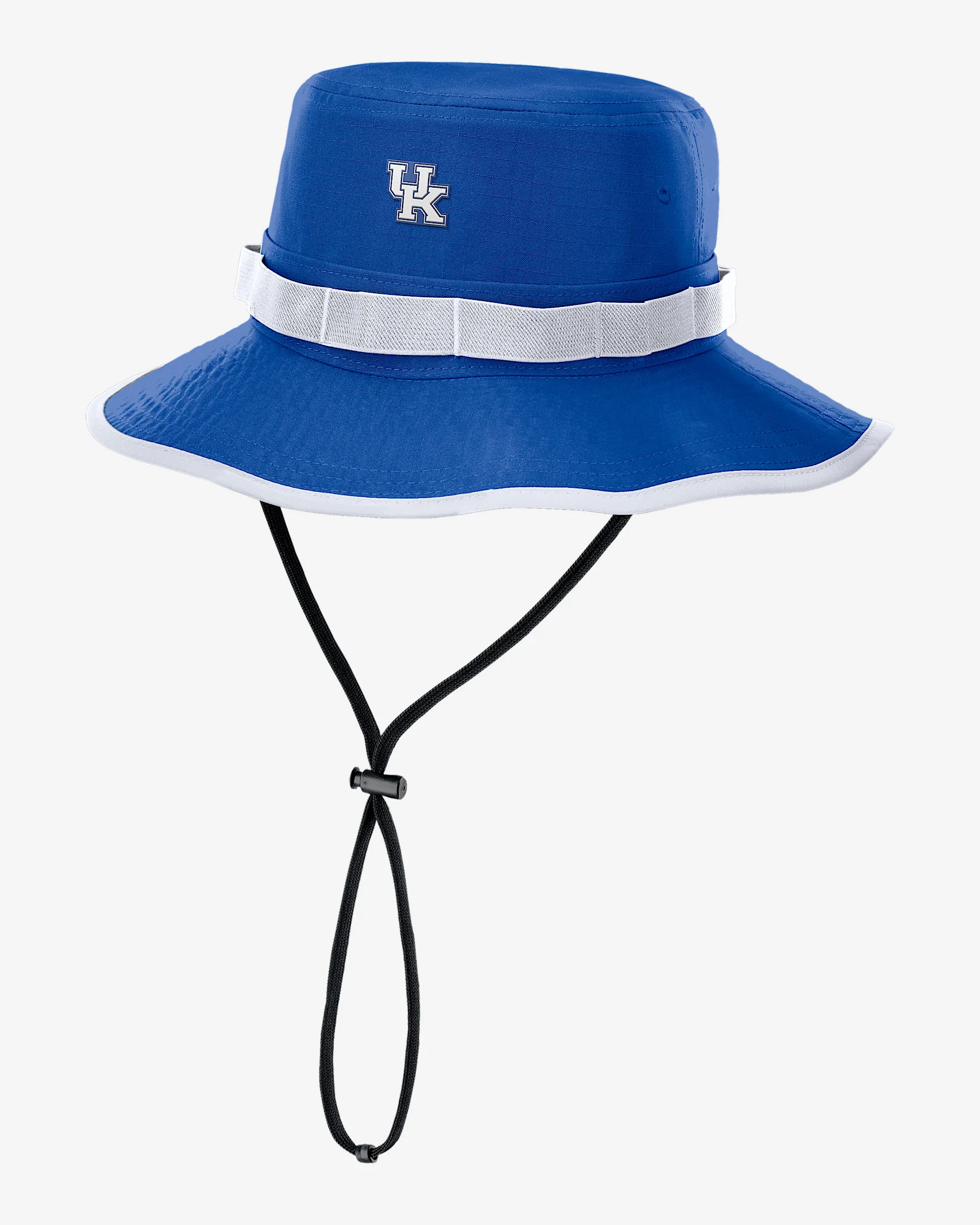 The Kentucky Sideline Apex Gameday Boonie Hat is perfect for the outdoors with a classic bucket design and wraparound brim providing 360-degree coverage. It pairs durable ripstop fabric with sweat-wicking technology for a cool, dry accessory. Benefits - Nike Dri-FIT technology moves sweat away from your skin for quicker evaporation, helping you stay dry and comfortable. - Adjustable chin strap with toggle helps keep the hat secure and in place. Product Details - 100% polyester - Hand wash - Imported - Shown: Royal - Style: NC1B054NNKY-CVH