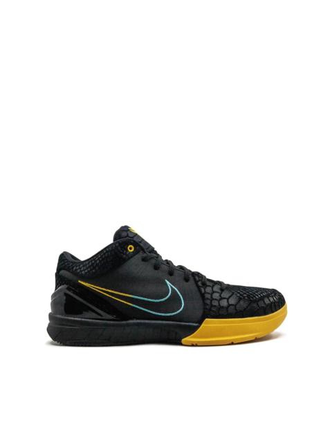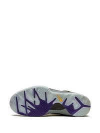 Kobe 4 Protro "Carpe Diem" sneakers First released in 2009, the Nike Zoom Kobe 4 Protro 'Carpe Diem' sneaker returns to honour the Los Angeles Lakers. Notes of team-inspired colours are seen throughout the synthetic, thermo-moulded upper, Swooshes and quilted textile collar, while a tongue emblem, snakeskin-textured detailing and a signature on the external heel nod to the legendary American professional basketball player. Imported Composition Leather 100%