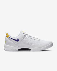 Designed to give you the most responsive feel, the Kobe 8 Protro continues that legacy by keeping an engineered mesh upper that molds to your foot and a traction pad that provides extra security. The 8 Protro evolves the original design with the addition of Nike React foam to provide greater responsiveness and durability. Product Details - Shown: White/University Gold/Court Purple - Style: HF9550-100