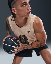 Two numbers, one mentality. Rep the Mamba’s journey with snakeskin-print numbers on this lightweight and breathable mesh jersey. Benefits - Mesh fabric has a lightweight and breathable feel. - '8' and '24 graphics are crafted from smooth synthetic leather for an elevated touch. Product Details - Embroidered Sheath logo - Embroidered Swoosh logo - Ribbed collar and armholes - 100% polyester - Machine wash - Imported - Shown: Sanddrift/Black - Style: IB2711-126 SIZE & FIT Model is wearing size M and is 6′0″183cm Standard fit: easy and traditional