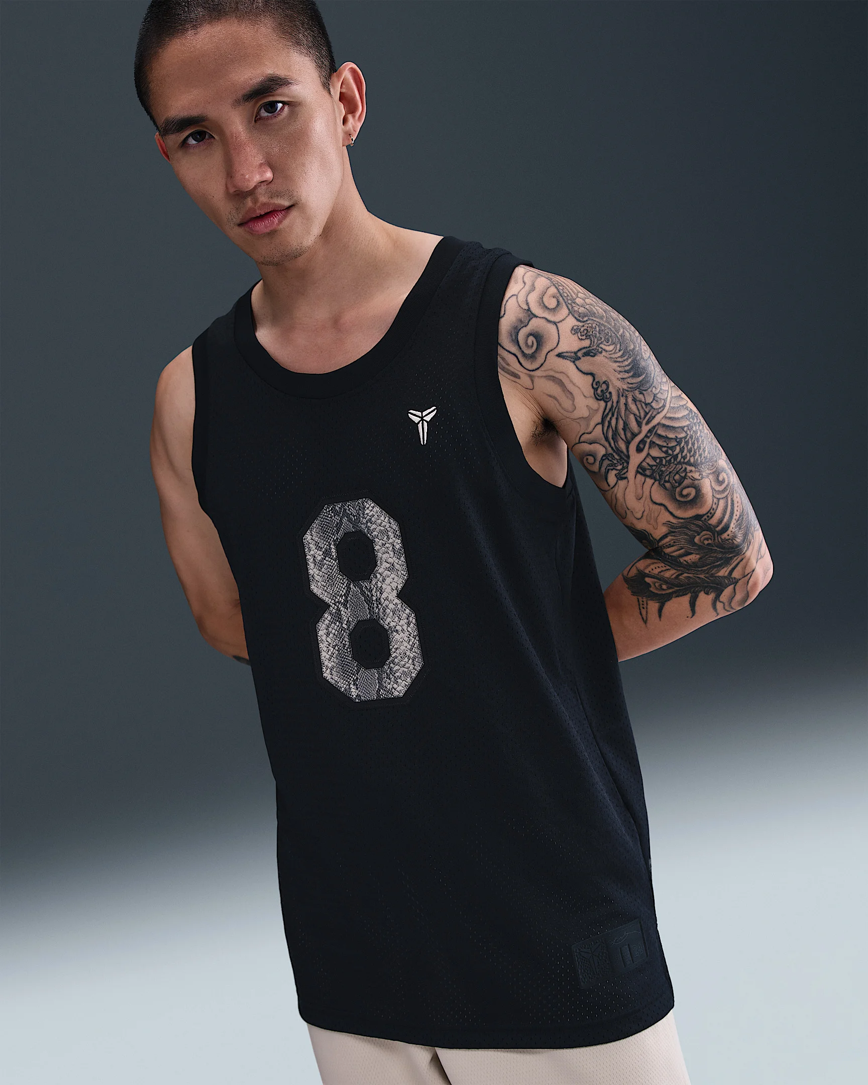 Two numbers, one mentality. Rep the Mamba’s journey with snakeskin-print numbers on this lightweight and breathable mesh jersey. Benefits - Mesh fabric has a lightweight and breathable feel. - '8' and '24 graphics are crafted from smooth synthetic leather for an elevated touch. Product Details - Embroidered Sheath logo - Embroidered Swoosh logo - Ribbed collar and armholes - 100% polyester - Machine wash - Imported - Shown: Black/Sanddrift - Style: IB2711-010 SIZE & FIT Model is wearing size M and is 6′0″183cm Standard fit: easy and traditional