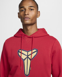 Embrace the Mamba Mentality in this soft pullover hoodie. Much like Kobe on the court, it brings multitool value to your wardrobe with its classic fit and soft, midweight French terry fabric. Kobe's classic sheath logo at the chest is paired with a zippered side pocket and a polished logo zipper pull. Benefits - Nike Dri-FIT technology moves sweat away from your skin for quicker evaporation, helping you stay dry and comfortable. - Smooth on the outside with unbrushed loops on the inside, this midweight French terry helps create breathability, so it’s comfy enough for you to wear all year long, no matter the temp. - Zippered utility pocket helps store your valuables on the way to and from the court. - Ribbed panels add extra mobility and stretch on the sides, underarm and on the chest. Product Details - Ribbed cuffs and hem - Embroidered Swoosh logo - Hood with drawcord - Body: 54% polyester/46% cotton. Rib: 96% cotton/4% spandex. Hood lining: 54% polyester/46% cotton - Machine wash - Imported - Shown: Varsity Red/Jersey Gold - Style: HF0066-636 SIZE & FIT Standard fit: easy and traditional