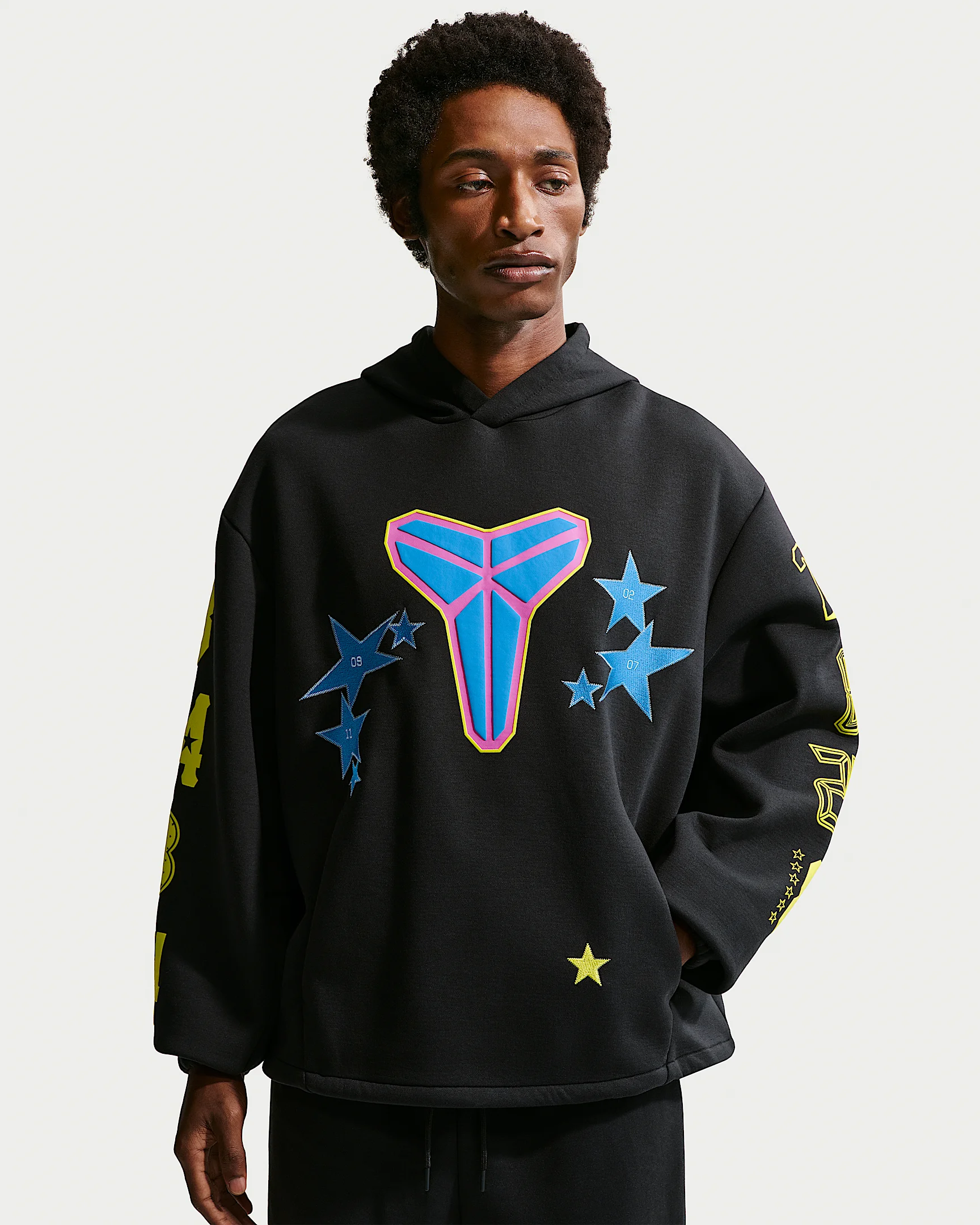 Kobe put on a show every time he stepped foot on the game’s biggest midseason stage. Entertain? Inspire? Of course. But Kobe wanted to compete. And win. This special pullover hoody celebrates his individual star-studded achievements—and the W’s he helped his team capture. Product Details - Stretchy pique-knit fabric - Adjustable bungee cord at hem - Hanger loop - Elastic cuffs - 85% polyester/12% cotton/3% spandex - Machine wash - Imported - Shown: Black/Sonic Yellow/Light Photo Blue - Style: IO0295-010 SIZE & FIT Model is wearing size M and is 6′1″185cm Standard fit: easy and traditional