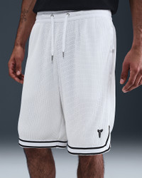 Channel the Mamba with these Kobe basketball shorts. With an ultra-breathable mesh and sweat-wicking Dri-FIT technology, they help you keep cool and comfortable. Even when it's crunch time. Benefits - Nike Dri-FIT technology moves sweat away from your skin for quicker evaporation, helping you stay dry and comfortable. - Pleated mesh brings extra volume and flow with every move. - Zippered pockets secure your belongings. Product Details - 10" inseam - Embroidered Kobe sheath logo - Elastic waistband with drawcord - Woven jock tag on back waistband - Body/Lining: 100% polyester - Machine wash - Imported - Shown: White/Black - Style: HV9988-100 SIZE & FIT Male model is wearing size M and is 6'1"185cm Loose fit: roomy and relaxed