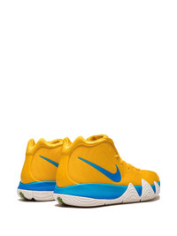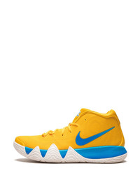 Kyrie 4 "Kix" sneakers During the summer of 2018, the Nike Kyrie 4 “Kix” was released as part of a 'Cereal Pack'- The classic set of Kyrie Irving’s fourth signature shoe features three special edition colourways inspired by his favourite breakfast cereals. This sneaker has a yellow mesh upper with blue and white accents that reflect the colours of the puffed corn cereal’s box. Officially sponsored by General Mills, the Kyrie 4 “Kix” features the cereal’s logo on the tongue as well as the brand’s “G” logo on the heel. Kix graphic insoles with Irving’s signature complete the tasty colourway. Alongside Kix, the other cereals featured in the Kyrie 4 pack are Lucky Charms and Cinnamon Toast Crunch. Imported Composition Sole: Rubber 100%