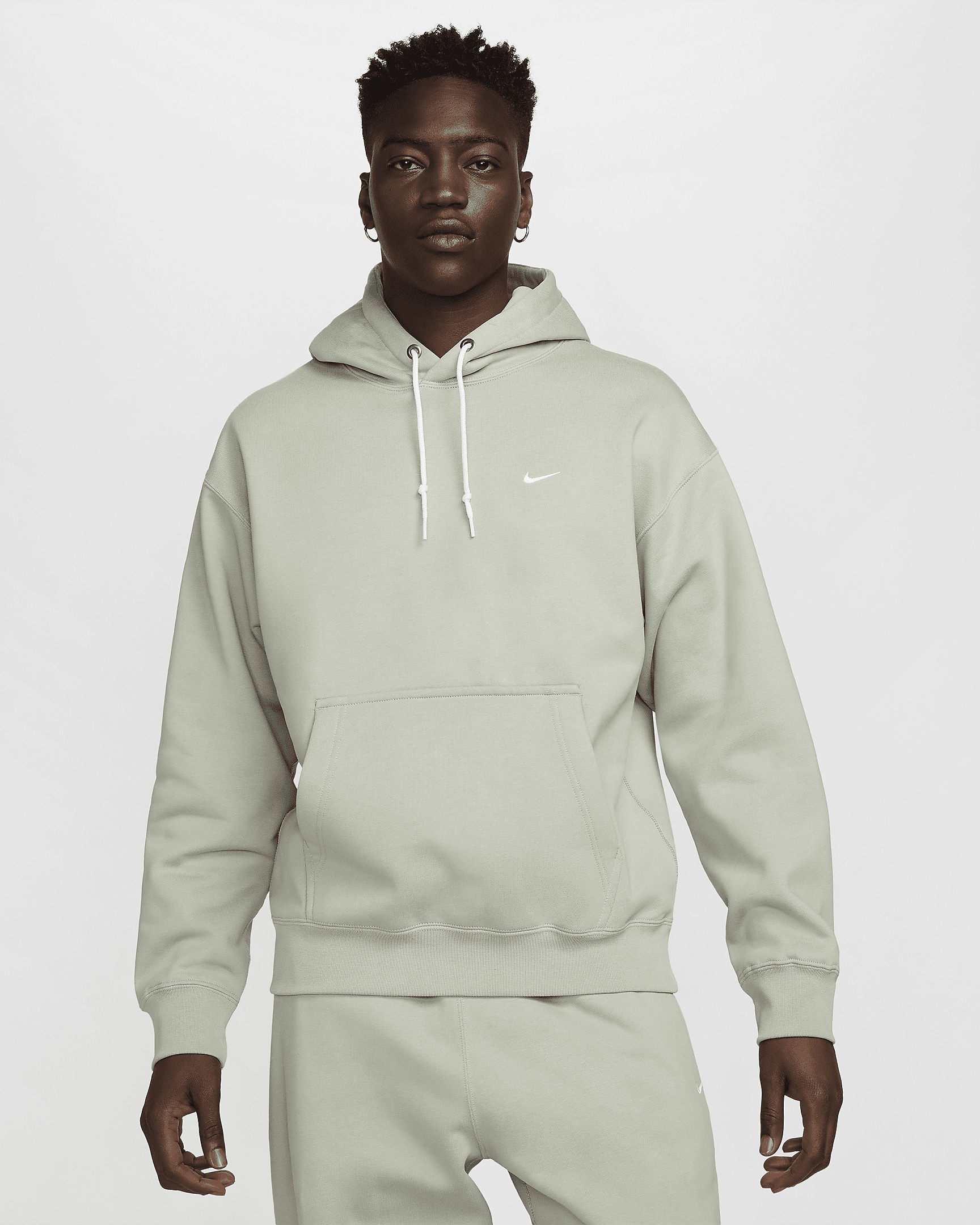 Celebrate the power and simplicity of the Swoosh. This warm, brushed fleece hoodie is made with some extra room through the shoulders, chest and body for easy comfort and laid-back, nostalgic style. Thick, stretchy ribbing at the cuffs and hem help hold the hoodie in place when you move and seal in your warmth when conditions cool. Our Solo Swoosh is embroidered on the left chest to keep your look clean and effortless. Benefits - Warm fleece is brushed for smooth comfort on your skin. - Dropped shoulders and a roomy fit let you move freely and layer with ease. - Thick, stretchy ribbing at the cuffs and hem help seal in your warmth and elevate the finish. - Spacious hood with braided drawcord and knotted tips let you personalize your style and coverage. Product Details - Embroidered Swoosh at left chest - Kangaroo pocket - Body: 84-85%% cotton/15-16% polyester. Pocket Bag: 100% cotton. - Material percentages may vary. Check label for actual content. - Machine wash - Imported - Shown: Jade Horizon/White - Style: DX1355-370 SIZE & FIT Model is wearing size M and is 6′3″189cm Loose fit: roomy and relaxed Fits large; we recommend ordering a size down