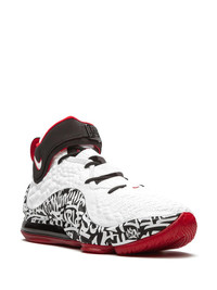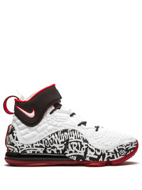 LeBron 17 "Graffiti" sneakers The Nike LeBron 17 "Graffiti" colourway was first introduced in 2006 and has since won the hearts of many. Crafted from panels of white and university red leather, these high-tops take LeBron's seventh signature silhouette and recreate it in a modern and street-savvy finish. Featuring a round toe, a flat rubber sole, a lace fastening, a branded insole, a signature Nike swoosh and a pull tab at the rear. Imported Composition Outer: Polyester 100% Sole: Rubber 100%