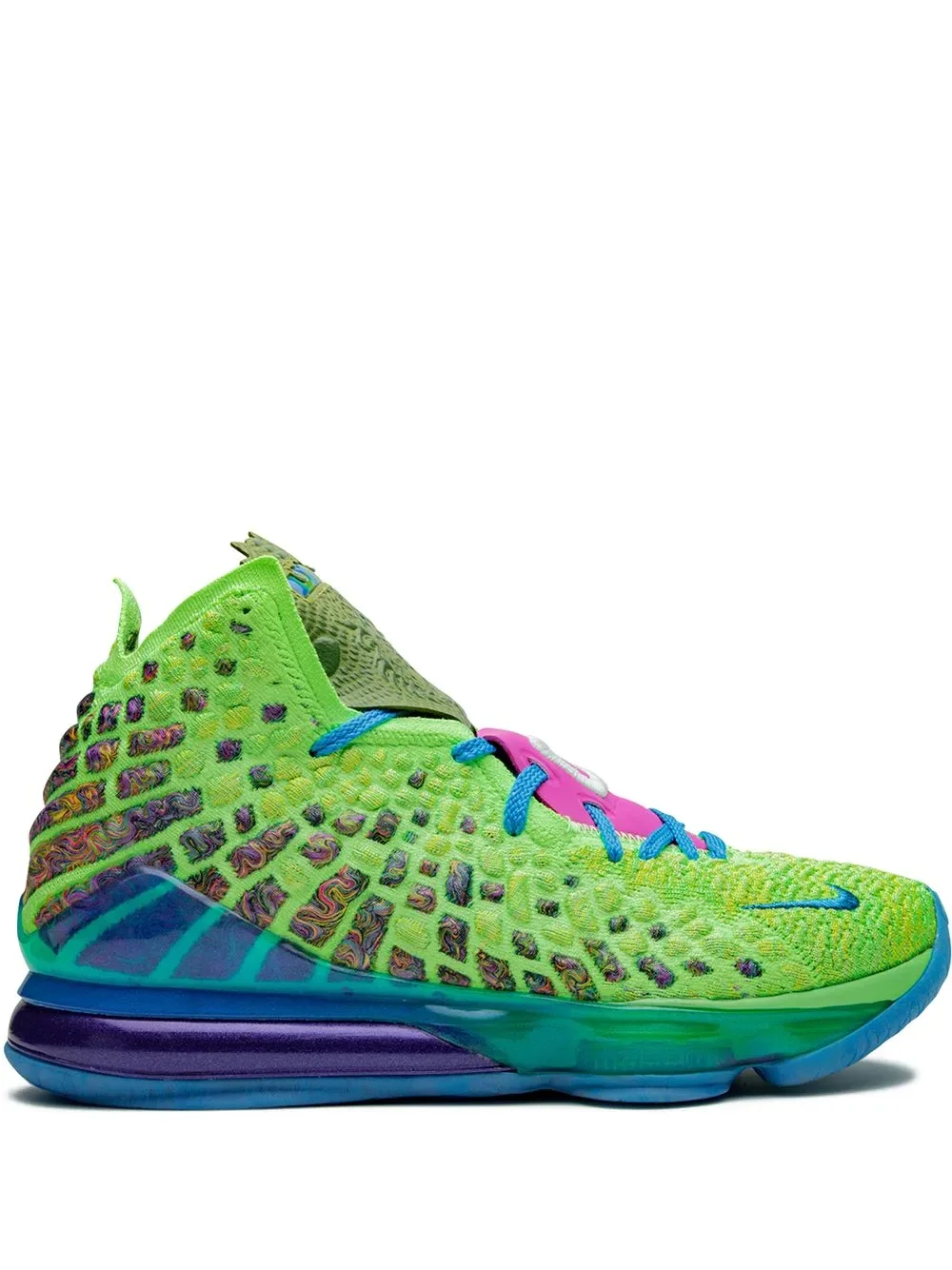 LeBron 17 All Star Promo "Mr. Swackhammer" sneakers Pump up the jam. Part of the All-Star Weekend 2020 edition of LeBron James' 17th signature sneaker, this pair of high-top Nike LeBron 17 'Mr. Swackhammer' sneakers is inspired by the evil villan Mr. Swackhammer from the legendary film 'Space Jam' as a nod to the basketball player's role in the movie. Crafterd from ghost green and laser blue Flyknit, the pair are laced atop a heel-to-toe Air cushion sole for optimal comfort for performance or casual wear. Highlights - Ghost green/laser blue - Round toe - Flat rubber sole - Front lace-up fastening - Branded insole - Pull tab at the heel - Release date: february 19th, 2020 - Supplied by a premier sneaker marketplace dealing with unworn, already sold out, in demand rarities. each product is rigorously inspected by experienced experts guaranteeing authenticity. Imported Composition Outer: Polyester 100% Lining: Polyester 100% Sole: Rubber 100%