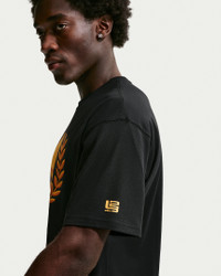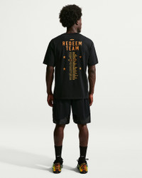When the United States called on LeBron to exact global vengeance on the game’s biggest stage in 2008, he answered. As an integral part of the Redeem Team, Bron helped bring glory back stateside, restoring world order in the process. This soft cotton tee celebrates King James and his country, the first of three stands atop the podium, golden again. Benefits - Dropped shoulders, longer sleeves and a roomy fit through the body and hips give the Max90 tee a relaxed and casual look. - Midweight cotton fabric feels soft and has a slight drape. Product Details - Loose fit - Ribbed collar - 100% cotton - Machine wash - Imported - Shown: Black - Style: IH8562-045 SIZE & FIT Model is wearing size M and is 6′0″183cm Loose fit: roomy and relaxed