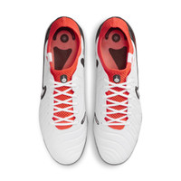 Even Legends find ways to evolve. The latest iteration of these Elite cleats has all-new FlyTouch Plus engineered leather. Softer than natural leather, it conforms to your foot and works with All Conditions Control (a grippy texture even in wet weather), so you can dictate the pace of your game. Lighter and sleeker than any other Tiempo to date, the Legend 10 is for any position on the field, whether you're sending a pinpoint pass through the defense or tracking back to stop a breakaway. Amplified Touch:See those microdots on the upper? They amplify touch zones for shooting, dribbling and passing. They make for a sleeker look while taking out the extra padding. Even better, they don't sacrifice the ball control you crave on the field. We shaved down the foam pods from the Tiempo 9, so your foot can get even closer to the ball when it’s in your control. Instead, we molded the lines into the cleat. All Conditions Control (ACC) technology adds a grippy texture in both wet and dry conditions. Natural, Conforming Fit:FlyTouch Plus engineered leather is incredibly soft. It helps the cleat mold to your foot for comfort without overstretching the material. Flyknit around the ankle gives you a secure feel. Traction for the Field:The plate blends conical studs in the heel for optimal traction and stability when braking and changing direction, just right under any conditions. Product Details:For use on slightly wet, short-grass fields. Cushioned insole. Style: DV4328; Color: White/Bright Crimson/Black; Size: 7; Gender: Male; Age Group: Adult | Nike Tiempo Legend 10 Elite Firm-Ground Low-Top Soccer Cleats in White, Size: 7 | DV4328-100