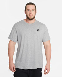 The Nike Sportswear Club T-Shirt is made with our everyday cotton fabric and a classic fit for a familiar feel right out of the bag. An embroidered Futura logo on the chest provides a signature Nike look. Benefits - The classic fit tee silhouette is relaxed through the body and hips. - Everyday cotton fabric feels soft and lightweight. Product Details - Standard fit for a relaxed, easy feel - Fabric: 100% cotton - Machine wash - Imported - Shown: Dark Grey Heather/Black - Style: AR4997-064 SIZE & FIT Standard fit: easy and traditional
