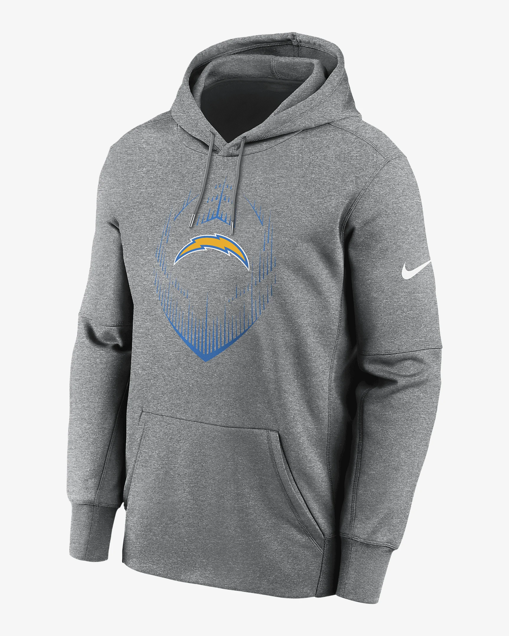 This Los Angeles Chargers Icon Hoodie combines heat-trapping technology with sweat-wicking fabric to provide elevated warmth that helps keep you comfortable in chilly conditions. Benefits - Nike Dri-FIT technology moves sweat away from your skin for quicker evaporation, helping you stay dry and comfortable. Product Details - Front pocket - Hood with adjustable drawstring - 100% polyester - Machine wash - Imported - Shown: Grey Heather - Style: NKAQ06G97-114