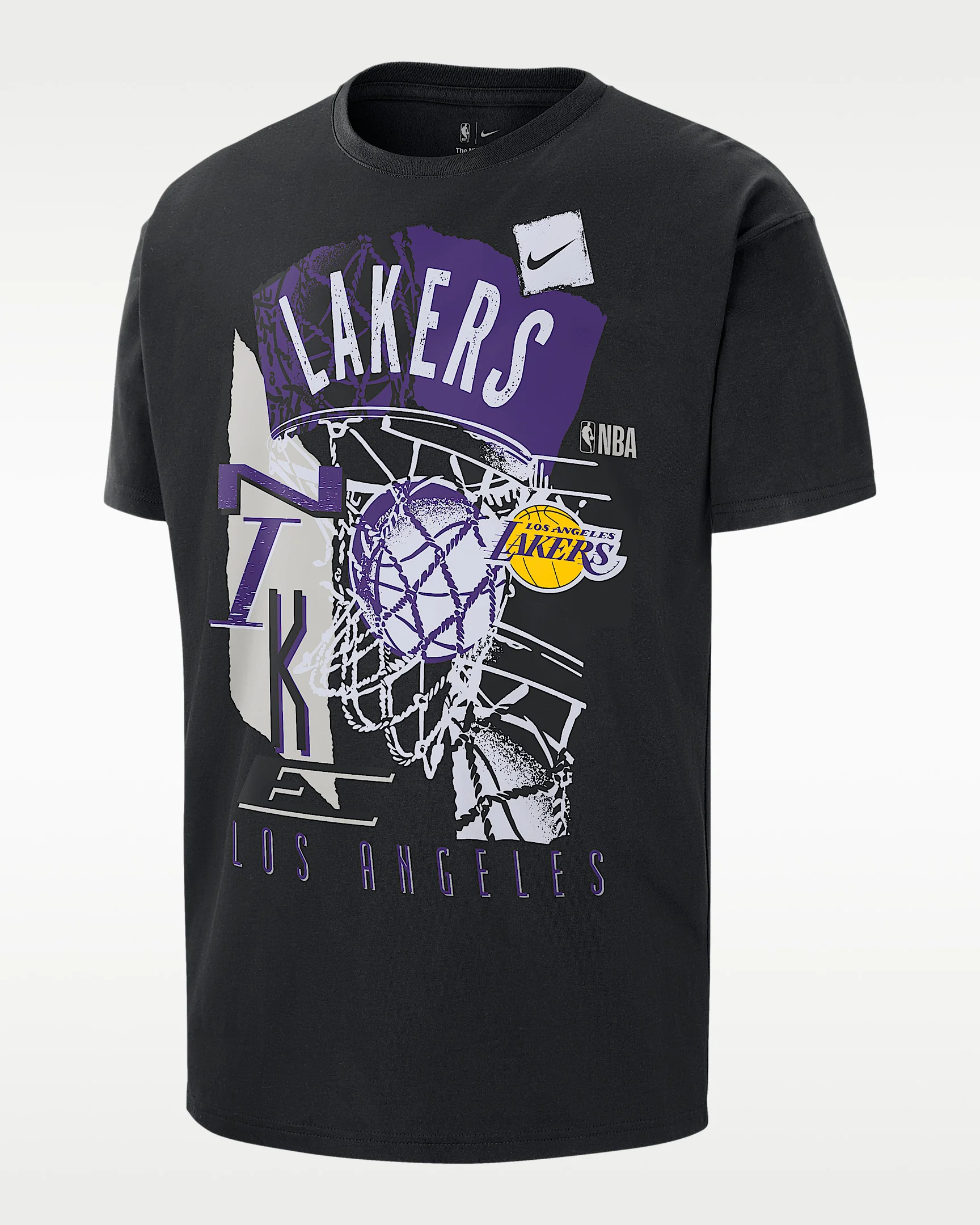 What better way to rep to your Los Angeles Lakers than a jumper cleanly splashing through a chain net? This retro graphic t-shirt is rooted in gritty, 90’s nostalgic sentiment. Cash out. Cha. Ching! Benefits - Midweight cotton fabric feels soft and has a slight drape. Product Details - Loose fit - 100% cotton - Machine wash - Imported - Shown: Black - Style: HV5643-010 SIZE & FIT Loose fit: roomy and relaxed