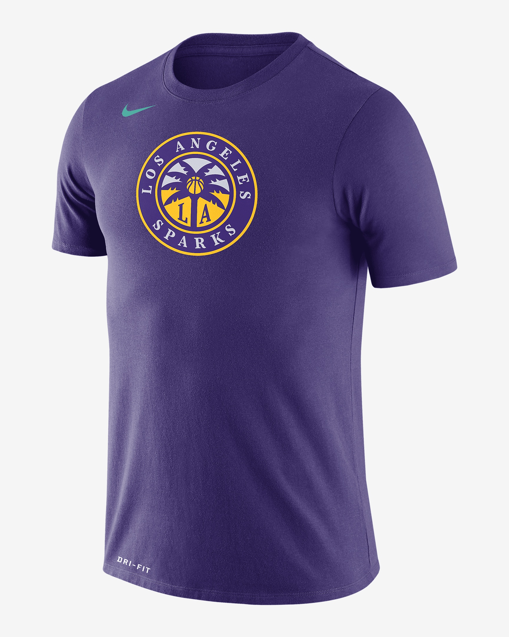 Rep your team in the Los Angeles Sparks Logo Nike WNBA T-Shirt. It's made with soft, lightweight fabric and sweat-wicking technology. Benefits - Dri-FIT technology helps you stay dry and comfortable. - Blended knit fabric feels soft and lightweight. Product Details - Standard fit for a relaxed, easy feel - Ribbed neckband - Printed graphics - 57% cotton/43% polyester - Machine wash - Imported - Shown: Court Purple - Style: DD3643-547 SIZE & FIT Standard fit: easy and traditional