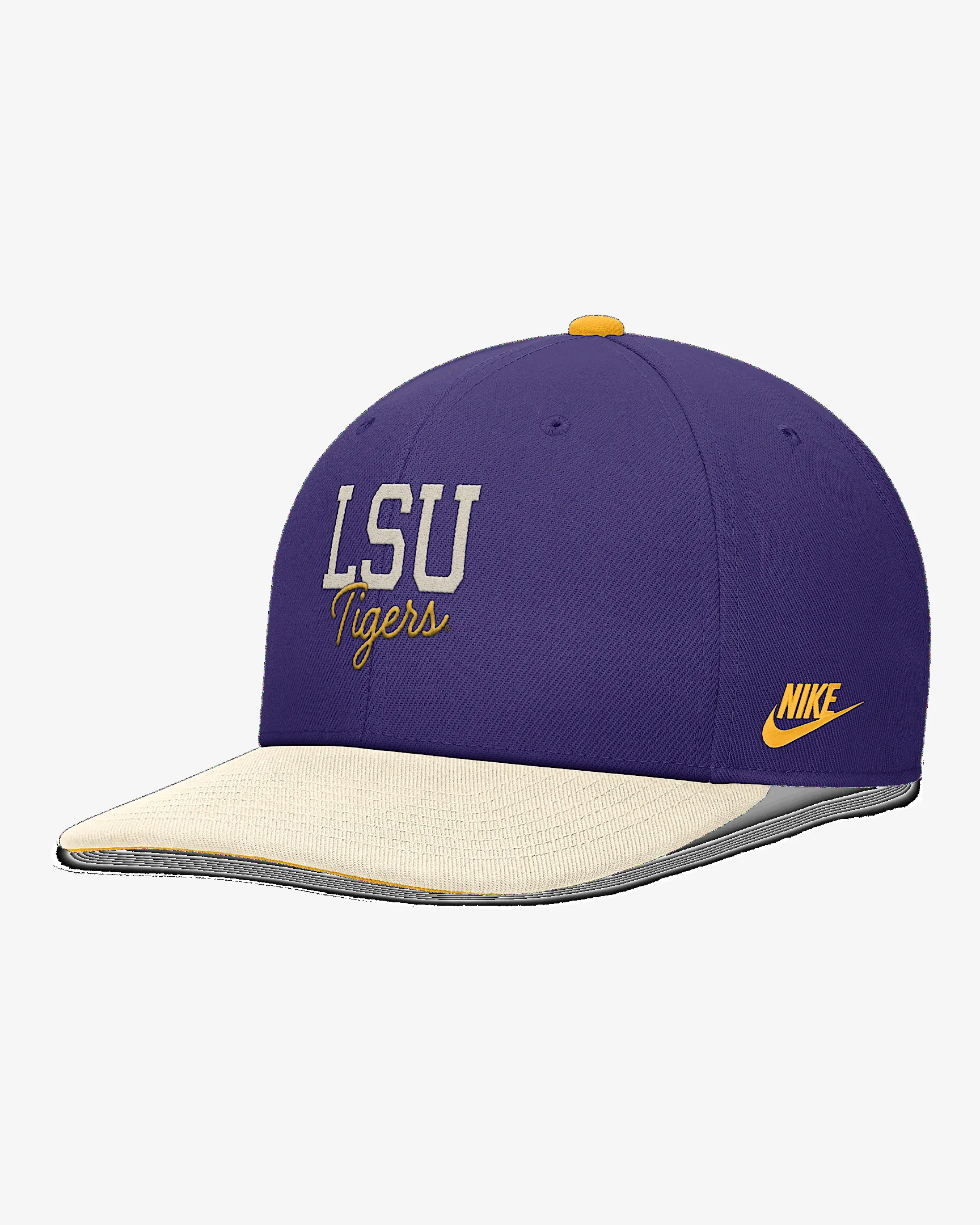 Featuring a square flat bill and high crown, this Legacy Script Hat helps you display support for LSU with embroidered team details on the front and right side. Its sweat-wicking technology and snapback closure help provide a breathable, comfortable feel. Benefits - Nike Dri-FIT technology moves sweat away from your skin for quicker evaporation, helping you stay dry and comfortable. - Snapback closure provides a customizable fit. Product Details - 6-panel design - Embroidered eyelets - 100% polyester - Hand wash - Imported - Shown: Gold - Style: NC120FCXLOV-1R5