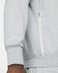 Nike Basketball offers the Standard Issue Top, part of a collection that combines classic looks with a modern performance feel. It has soft, heavyweight fabric mixed with sweat-wicking technology that's ready to go right out of your gym bag. Wear it alone or as an extra layer to help take the chill off. Benefits - Nike Dri-FIT technology moves sweat away from your skin for quicker evaporation, helping you stay dry and comfortable. - French terry fabric has a soft feel for lightweight comfort—like your classic sweatshirt. - Zippered pocket at the right side is large enough to store most phones. Product Details - Ribbed side panels, cuffs, hem and neckband - Embroidered Swoosh graphic - Woven "Standard Issue" label - Loose fit - Body: 61% cotton/39% polyester. Rib: 97% cotton/3% spandex. - Machine wash - Imported - Shown: Dark Grey Heather/Pale Ivory - Style: DQ5820-063 SIZE & FIT Model is wearing size M and is 6'0"183cm Big & Tall model is wearing size 2XL and is 6'2"188cm Loose fit: roomy and relaxed