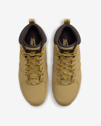 The Nike Manoa is the perfect match when dressing for winter. Featuring crisp leather on the upper, a thick padded collar and rugged tread, it helps you style for the season. The webbing pull tab and round laces add details ready for the outdoors. Benefits - leather in the upper is durable and is designed to help keep out the cold and wet. - Gusseted tongue is designed to help keep debris out of the boot while letting you mix up how you wear them—laced or unlaced. - Round laces with metal eyelets are easy to grab with gloved hands, let you personalize your comfort, and add to the rugged, outdoorsy look. - The foam midsole provides lightweight cushioning that lasts. - Rugged rubber outsole with large lugs delivers long-lasting durability and traction. Product Details - Pull tab - Embossed Swoosh - Tongue decal with "Nike" and Swoosh - Shown: Haystack/Velvet Brown/Haystack - Style: 454350-700