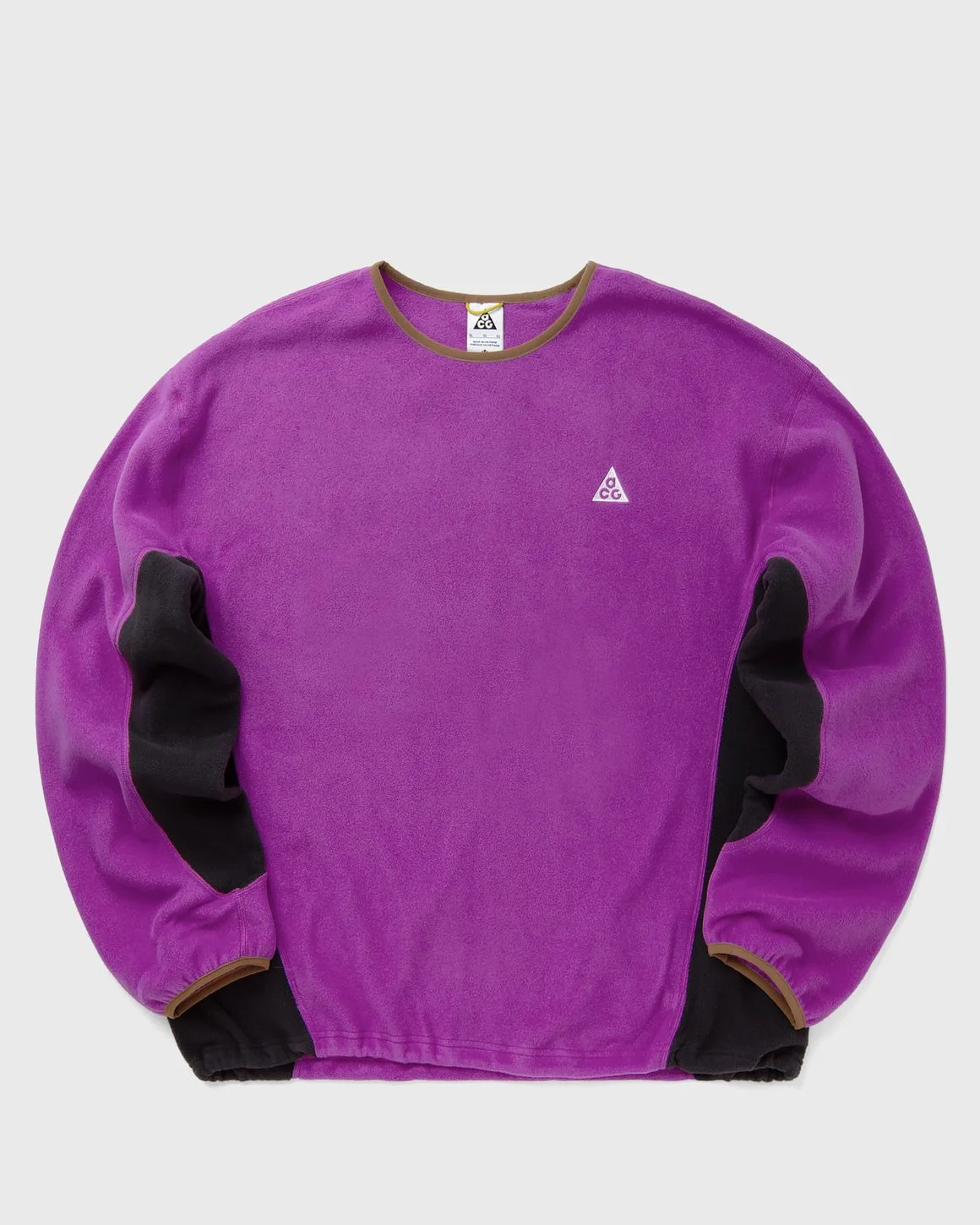 The Nike ACG Wolf Tree Crew is a technically inspired, hoodless midlayer made from Polartec fleece that provides reliable warmth thanks to its insulating properties – ideal for cool outdoor adventures. The cut is deliberately loose, with a bungee-adjustable hem and elastic cuffs for optimal freedom of movement and heat retention. - Bungee system at the waist helps to adjust the fit - Elastic cuffs at the wrists, waist, and collar help to retain heat - Reinforced seams provide additional durability - Loose fit offers plenty of freedom of movement and allows for multiple layers to be worn - Articulation at the arms and shoulders promotes natural movement - Embroidered ACG and Swoosh logos - Embroidered Polartec logo Article Number: HV1117-551 Gender: Men Color: VIVID PURPLE/BLACK/MOSSWOOD BROWN/( Material: 100% Polyester