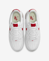 Comfortable, durable and timeless—it’s number 1 for a reason. Cutaway details expose a premium textile Swoosh logo and full-length Air units in the outsole, revealing the Air Force 1 in a new way. The classic ‘80s construction pairs with bold details for style that tracks whether you’re on court or on the go. Benefits - Leather upper with textile accents creates a classic look that’s built to last. - Originally designed for performance hoops, visible Air cushioning delivers lasting comfort. - Rubber outsole with heritage hoops pivot circles adds traction and durability. - Padded, low-cut collar looks sleek and feels great. Product Details - Shown: White/Summit White/University Red - Style: HF3630-100