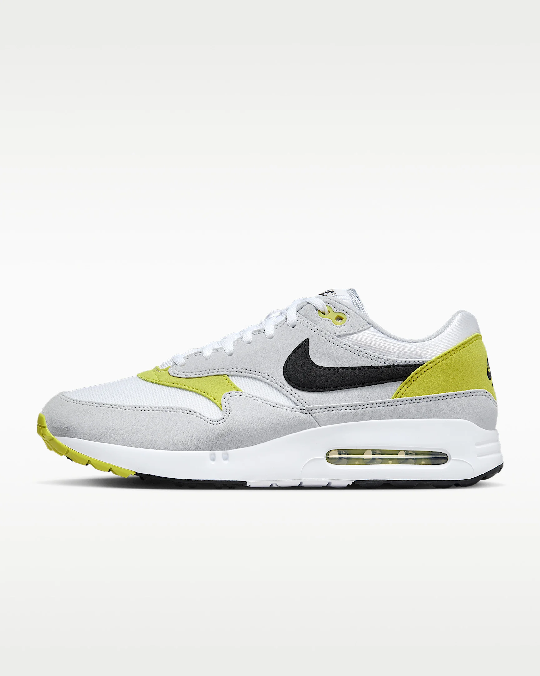 A streetwear legend hits the links in the Air Max 1 G. Featuring the 4-window design that lets you peak at the large Air unit underneath, this is on-course cool, confidence and comfort personified. It sports the vintage Air Max 1 details you love, like clean lines and unmistakable colors, and melds them with our game-changing golf technology, so you can play all day, year-round in a timeless fit. Product Details - 1-year waterproof warranty - Increased durability for long-lasting wear - Spikeless - Full-length foam midsole - Shown: Wolf Grey/White/Bright Cactus/Black - Style: DV1403-004