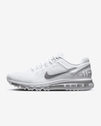 Back and just as stylish as ever. The Air Max 2013 returns with mesh detailing and sporty, no-sew overlays to help keep you looking and feeling fresh. Plus, tried-and-true Flywire lacing and classic full-length Air cushioning provide lasting comfort and support. Benefits - Originally developed for performance running, visible Nike Air cushioning delivers lasting comfort. - Airy mesh details on upper are reinforced with synthetic leather overlays for highly ventilated, classic Nike look. - Foam midsole has flex grooves for a supportive feel that lets you move freely. Product Details - Reflective details - Not intended for use as Personal Protective Equipment (PPE) - Shown: White/Black/Metallic Silver - Style: HF4884-100