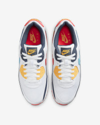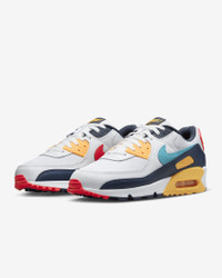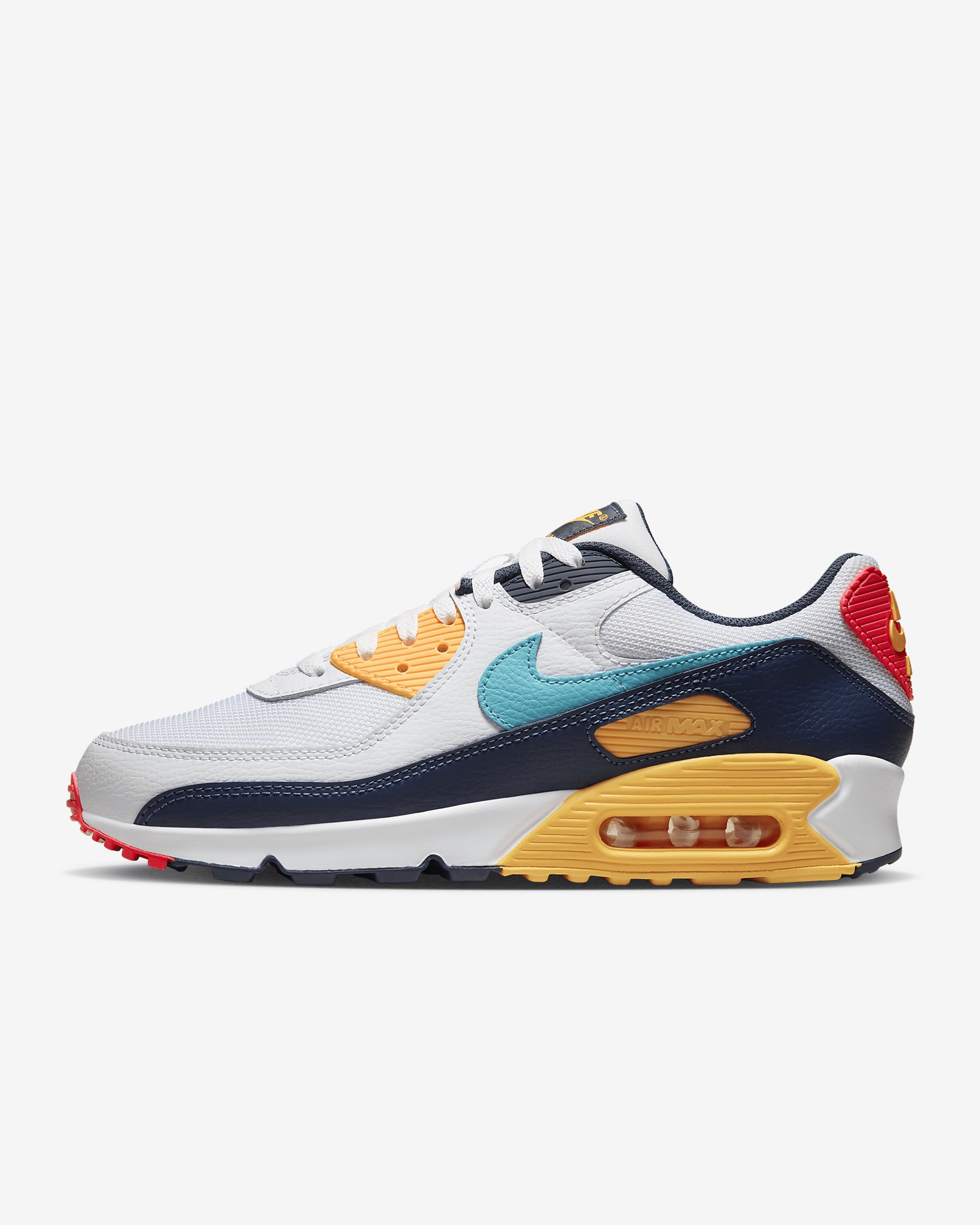 Nothing as fly, nothing as comfortable, nothing as proven. Worn by presidents, this champion running shoe helped define the '90s. The Air Max 90 stays true to its running roots with our iconic Waffle sole, striking visuals and classic details. Modern neutrals are contrasted with bold pops of color to add fresh energy to an icon while Max Air cushioning adds comfort to the journey. Benefits - Stitched overlays and plastic accents add durability, comfort and that iconic '90s look. - Originally designed for performance running, Max Air cushioning puts the history of comfort beneath your feet. - Rubber Waffle outsole adds traction, durability and heritage style. - Padded, low-top collar looks sleek and feels comfortable. - Shown: White/Thunder Blue/Racer Pink/Dusty Cactus - Style: HF4860-100