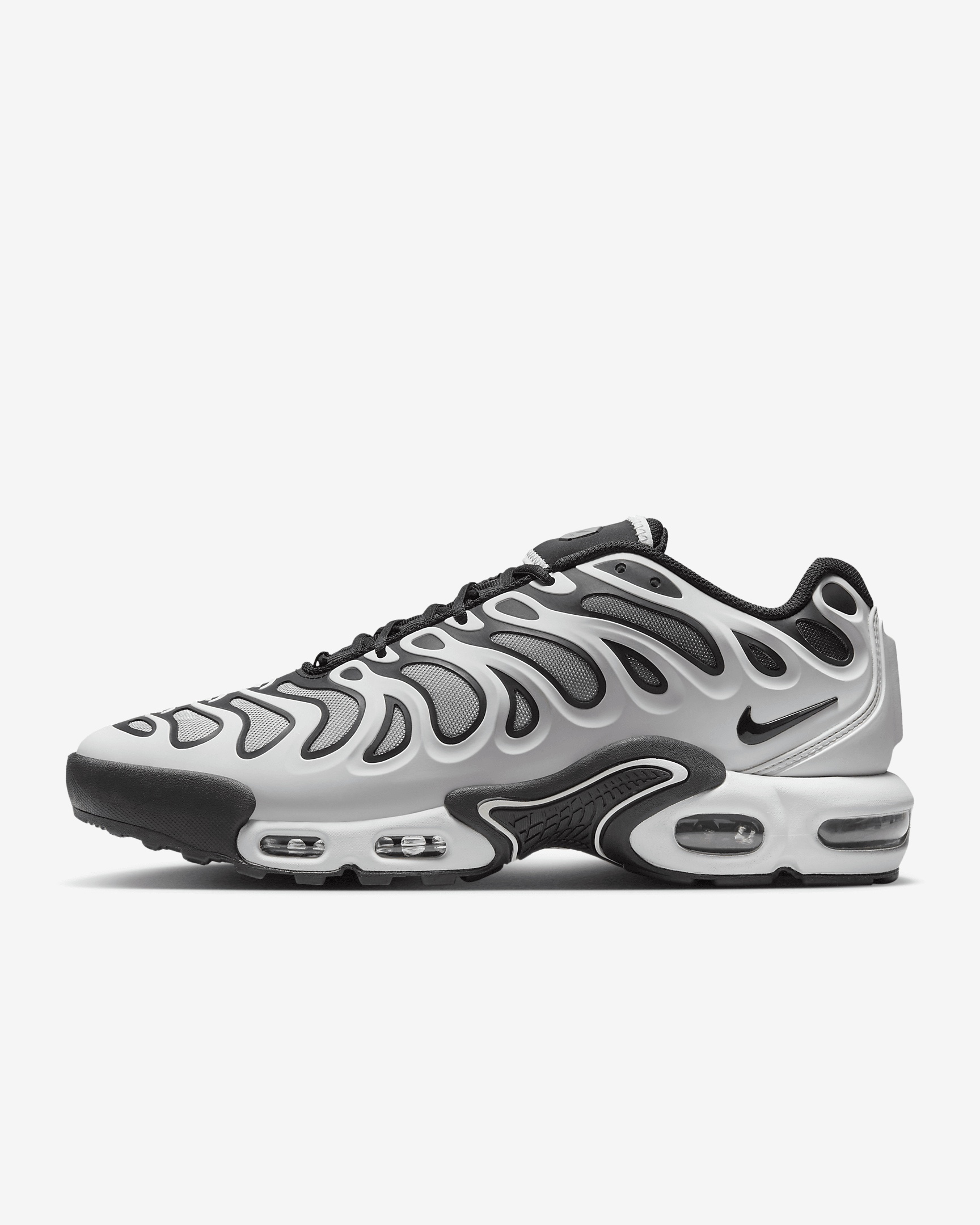 Let your attitude have the edge in the Air Max Plus Drift, a "tuned" Air experience that offers premium stability and cushioning. Featuring airy mesh, gradient coloring and the original wavy design lines, it celebrates your defiant style. Benefits - Upper combines mesh and synthetic materials for breathability and durability. - Originally designed for performance running, Nike Air units provide lightweight cushioning that lasts. - Bringing beach life to the city, the supportive arch draws inspiration from a whale's tail while the wavy lines nod to palm trees and ocean waves. Product Details - Foam midsole - Rubber outsole - Shown: White/Metallic Silver/Black - Style: FD4290-101 SIZE & FIT Fits large; we recommend ordering a fl size down