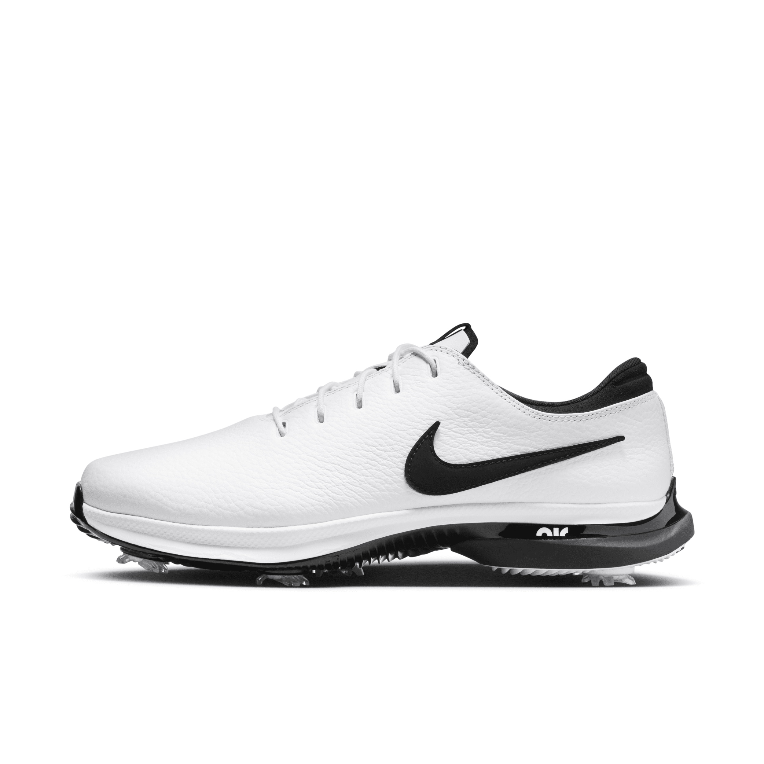 Designed for the all-day grinders and dawn patrollers, destined for feet of the fanatic that just moseyed back to the driving range after shaving a few strokes off yesterday’s score. The Nike Air Zoom Victory Tour 3 offers robust comfort, unreal energy return and brand-new spikes whether you’re swinging through or playing through en route to 36. Plus, the old-school look will earn a knowing head nod from your peers after picking your putt out of the cup. Feel the Grip:A new Champs Spike System in the key 3 forefoot spike locations work with Cyclone Pro Tour spikes to offer exceptional traction in all conditions. They give your feet great grip on the ground when you’re going all out for the pin. Soft to the Touch:Full-grain leather has a supple feel and sophisticated look. An internal strap stretches over then secures your foot, helping to conform to its shape. All-Round Response:We stitched a Zoom Air unit directly to the upper instead of being set into foam, so it responds to every step. A full-length plate beneath the Air unit helps increase energy return. Cushy foam under the heel delivers an extremely smooth ride. More Benefits:A molded 3-D collar helps you stay stabilized. Internal foam pods cushion your heel. Product Details:2-year waterproof warranty. Cushioned insole. Style: DX9025; Color: White/Black; Size: 11; Gender: Male; Age Group: Adult | Nike Air Zoom Victory Tour 3 Golf Shoes (Wide) in White, Size: 11 | DX9025-103