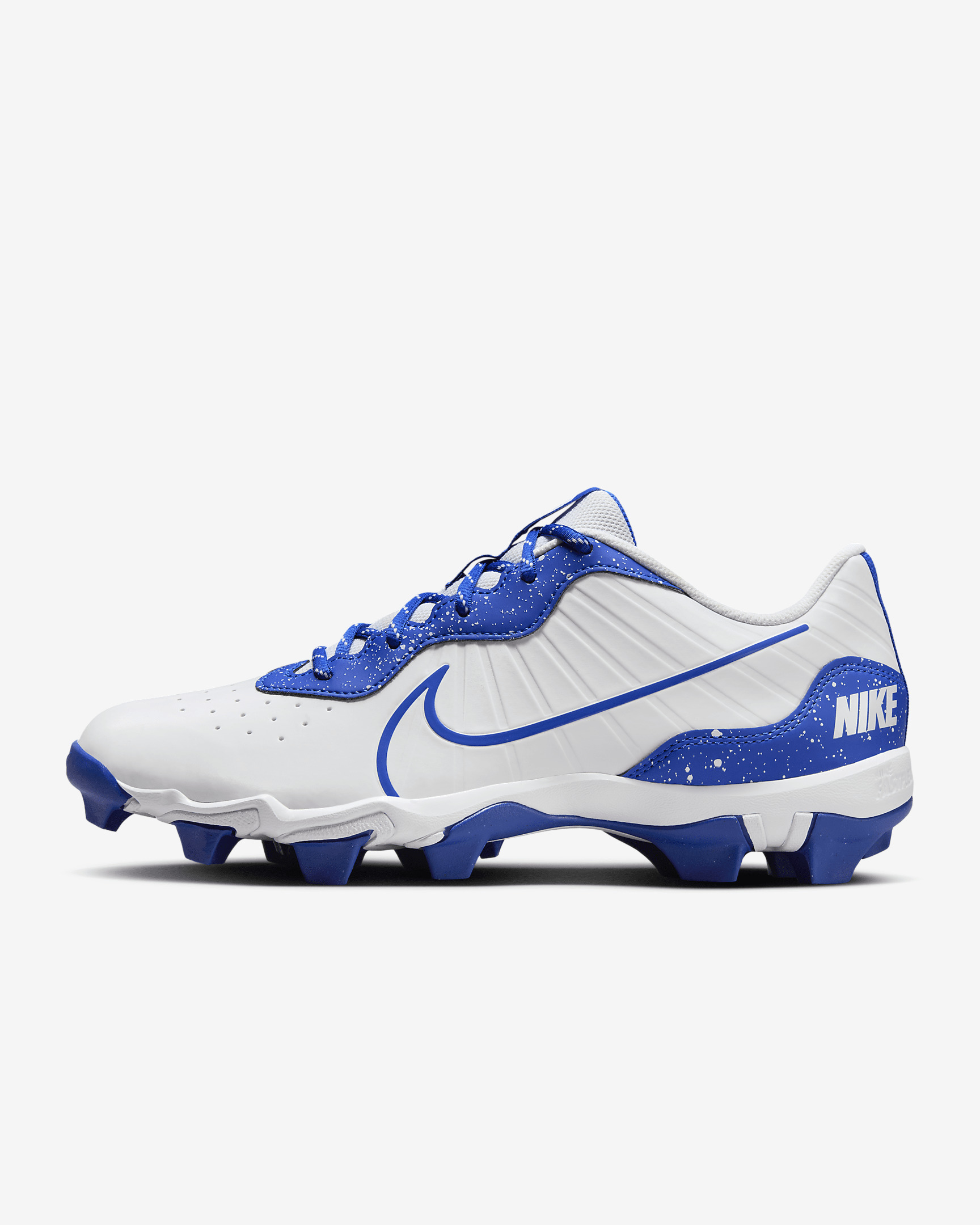 Let the baseball world know what kind of bat-wielding beast you are. The cushy midsole is perfect for sprinting around the bags or robbing your opponent of extra bases in the field. The plush, breathable upper sports a strap that keeps you contained without adding any unnecessary weight. Plus, the grippy rubber cleats are tailor made for all-out effort plays. More Benefits - Mesh on the tongue adds ventilation to help keep your foot cool. - Upper adds ankle support without sacrificing mobility. Product Details - Shown: White/Hyper Royal - Style: DJ6524-105
