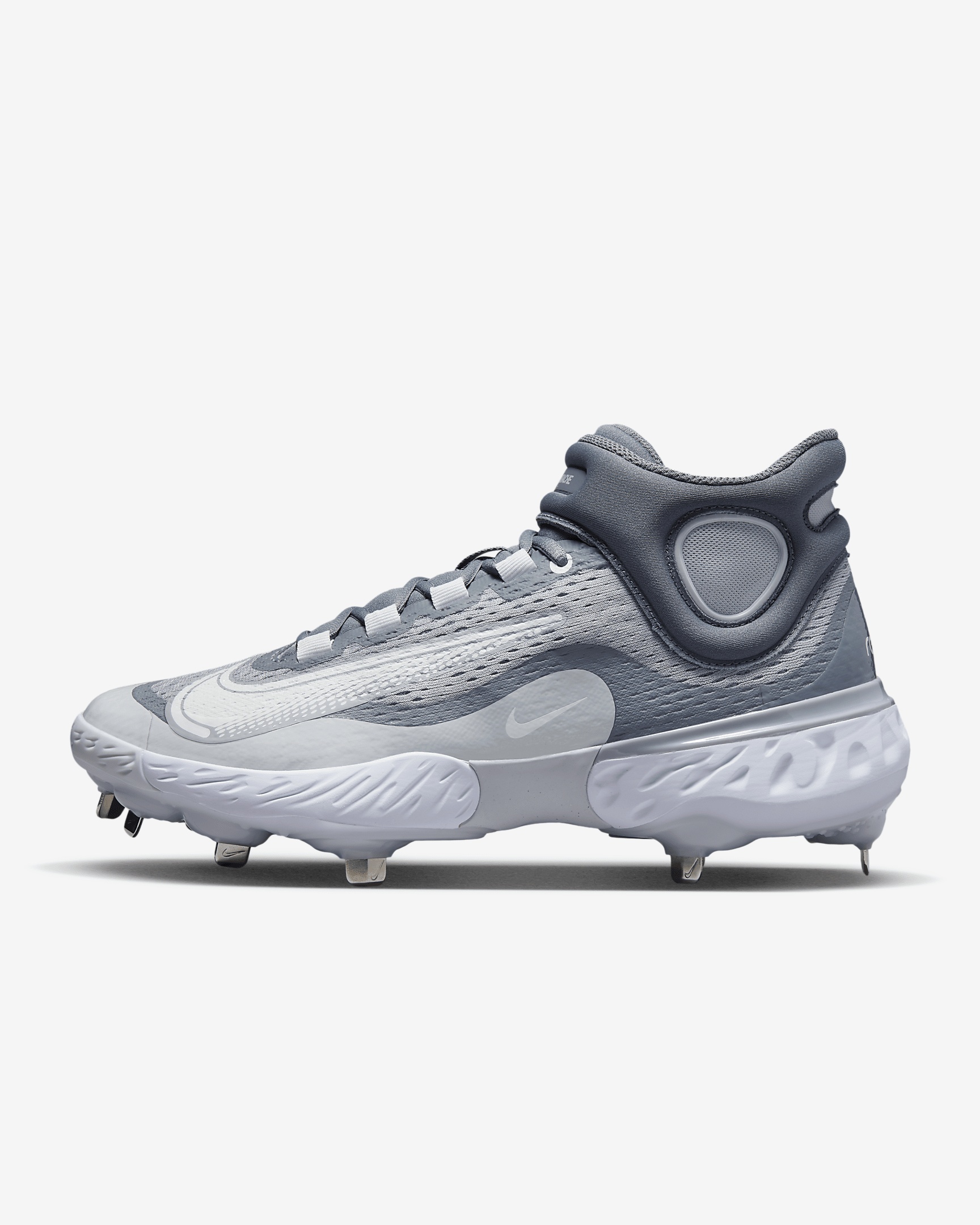 Let the baseball world know what kind of bat-wielding beast you are. The midsole has React foam cushioning, perfect for sprinting around the bags or robbing your opponent of extra bases. The plush, breathable upper sports a strap that helps keep you contained without adding any unnecessary weight. Plus, the grippy rubber traction is tailor-made for all-out effort plays. More Benefits - Internal webbing and updated mesh provide lightweight, breathable support and containment. - Layers of breathable mesh and strategically placed overlays give you a secure fit. Product Details - Shown: Wolf Grey/Cool Grey/Pure Platinum/White - Style: DJ6520-012