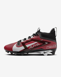 When the clock’s ticking away and only a touchdown or defensive stand will do, the Alpha Menace 4 Elite can help you perform at the highest level. We kept everything you loved about the 3, like the strong plastic side cage for stability. But we also made updates based on input from pro superstars, like a revamped upper and more accessible lacing system. The result is a cleat that has you ready to change the game. More Benefits - Synthetic leather on the upper provides durability. - Stretch-knit cuff wraps your ankle. - Soft foam midsole provides lightweight cushioning and a close-to-the-ground feel. Product Details - Shown: University Red/Team Red/Black/White - Style: FD7036-600