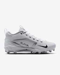 Built for burly thumpers and beastly wrecking balls thinking "pay dirt," the Alpha Menace 4 Varsity fits the bill. We brought back the Alpha Menace 2 underfoot technology that allows you to move naturally and softened the midsole, so you can cut and crush throughout practice or when it’s game time. Product Details - Shown: White/Metallic Silver/Photon Dust/Black - Style: FN0027-100