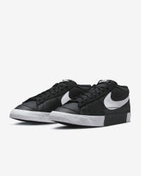 A classic with a twist. This low-top take on the Blazer Mid Pro Club pays homage to its heritage while stepping into a modern space. Exposed foam on the tongue keeps the look you love, and stitching around the Swoosh logo and midsole adds a new look. Benefits - Originally designed for performance hoops, the durable construction, tough stitching and easy-entry lacing deliver comfort that lasts. - Padded, low-cut collar looks sleek and feels great. - Vulcanized construction fuses the sole to the upper for a flexible, broken-in feel. - Solid rubber outsole with herringbone pattern adds durable traction and heritage style. Product Details - Shown: Black/Anthracite/White - Style: FJ3694-001