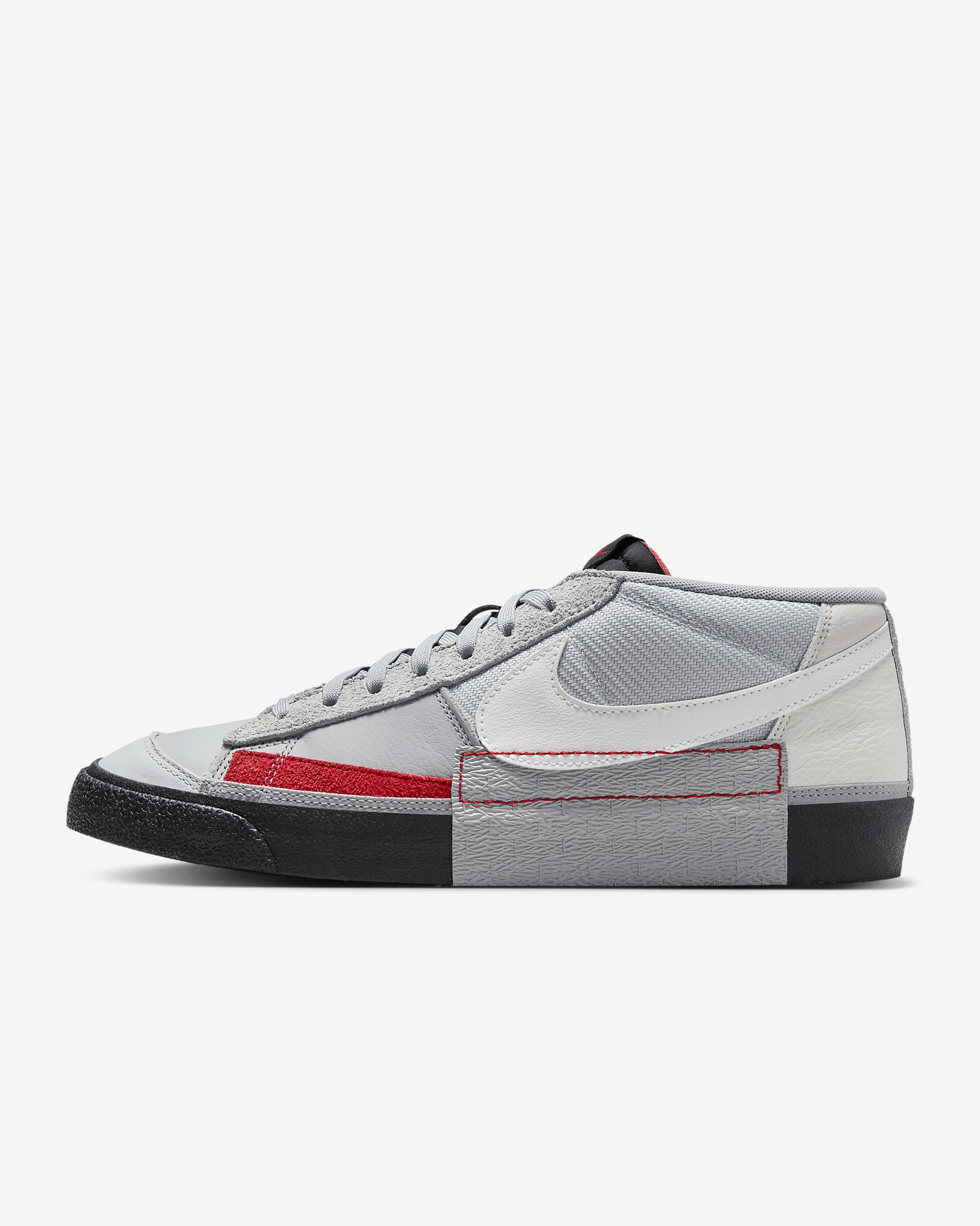 A classic with a twist. This low-top take on the Blazer Mid Pro Club pays homage to its heritage while stepping into a modern space. Exposed foam on the tongue keeps the look you love, and stitching around the Swoosh logo and midsole adds a new look. Benefits - Originally designed for performance hoops, the durable construction, tough stitching and easy-entry lacing deliver comfort that lasts. - Padded, low-cut collar looks sleek and feels great. - Vulcanized construction fuses the sole to the upper for a flexible, broken-in feel. - Solid rubber outsole with herringbone pattern adds durable traction and heritage style. Product Details - Shown: Wolf Grey/Pure Platinum/University Red/Summit White - Style: FJ3694-002