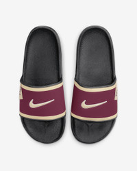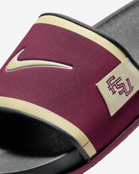 Rep the Seminoles all the way down to your feet in these Florida State slides. A cushioned synthetic leather strap features your school’s logo, while an innovative foam midsole makes this slide so comfy, you’ll never want to take it off. Benefits - Contoured footbed cradles your foot while the dual-density foam adds cushioning and stability. - Soft, plush fabric lines the synthetic leather strap to add comfort. - Shown: Team Maroon/Dark Smoke Grey/Team Gold - Style: FN4138-600