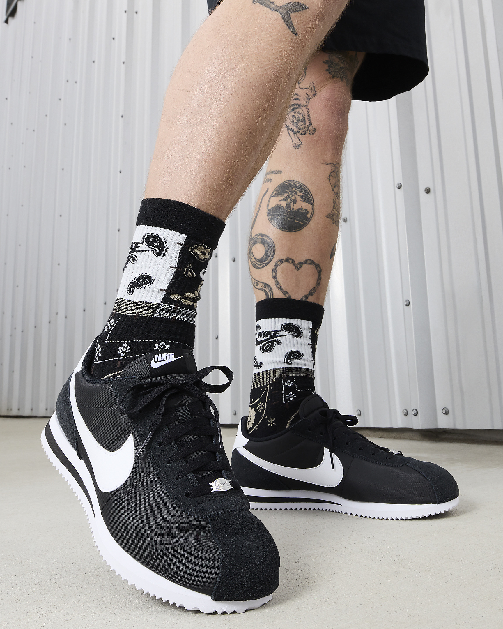 You spoke. We listened. Based on your feedback, we've revamped the original Cortez while still keeping the retro appeal you know and love. This nylon and suede edition features a wider toe area and firmer side panels, so you can comfortably wear them day in and day out without any warping. Cortez fans—this one’s for you. Benefits - Reengineered upper is extra durable to help prevent warping, creasing and scuffing. - Wider toe box provides a more comfortable fit. - Firmer side panels help keep your foot in place for a more stable feel. - Foam midsole with iconic wedge insert provides all-day comfort. - Herringbone outsole pattern pairs durable traction and heritage style. Product Details - Padded collar - Foam midsole - Rubber outsole - Shown: Black/White - Style: HF0263-001