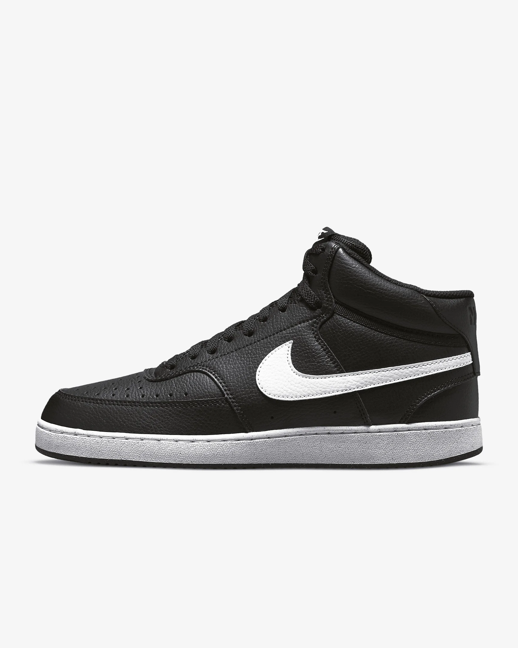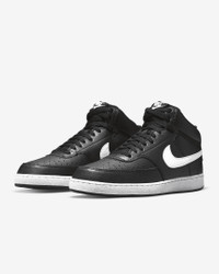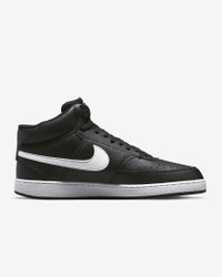 In love with the classic look of '80s basketball but have a thing for the fast-paced culture of today's game? Meet the Nike Court Vision Mid. A classic remixed with at least 20% recycled materials by weight. We replaced leather with recycled and synthetic materials that keeps the soul of the original style. Its crisp upper and stitched overlays stays true to its origins. The plush collar keeps it sleek and comfortable for your world. Benefits - Made with at least 20% recycled material by weight. - Using synthetic materials, the design features materials that echo mid-1980s basketball shoes. - Padded collar looks sleek and feels great while the perforations on the toe and sides add comfort and breathability. Product Details - Shown: Black/Black/White - Style: DN3577-001