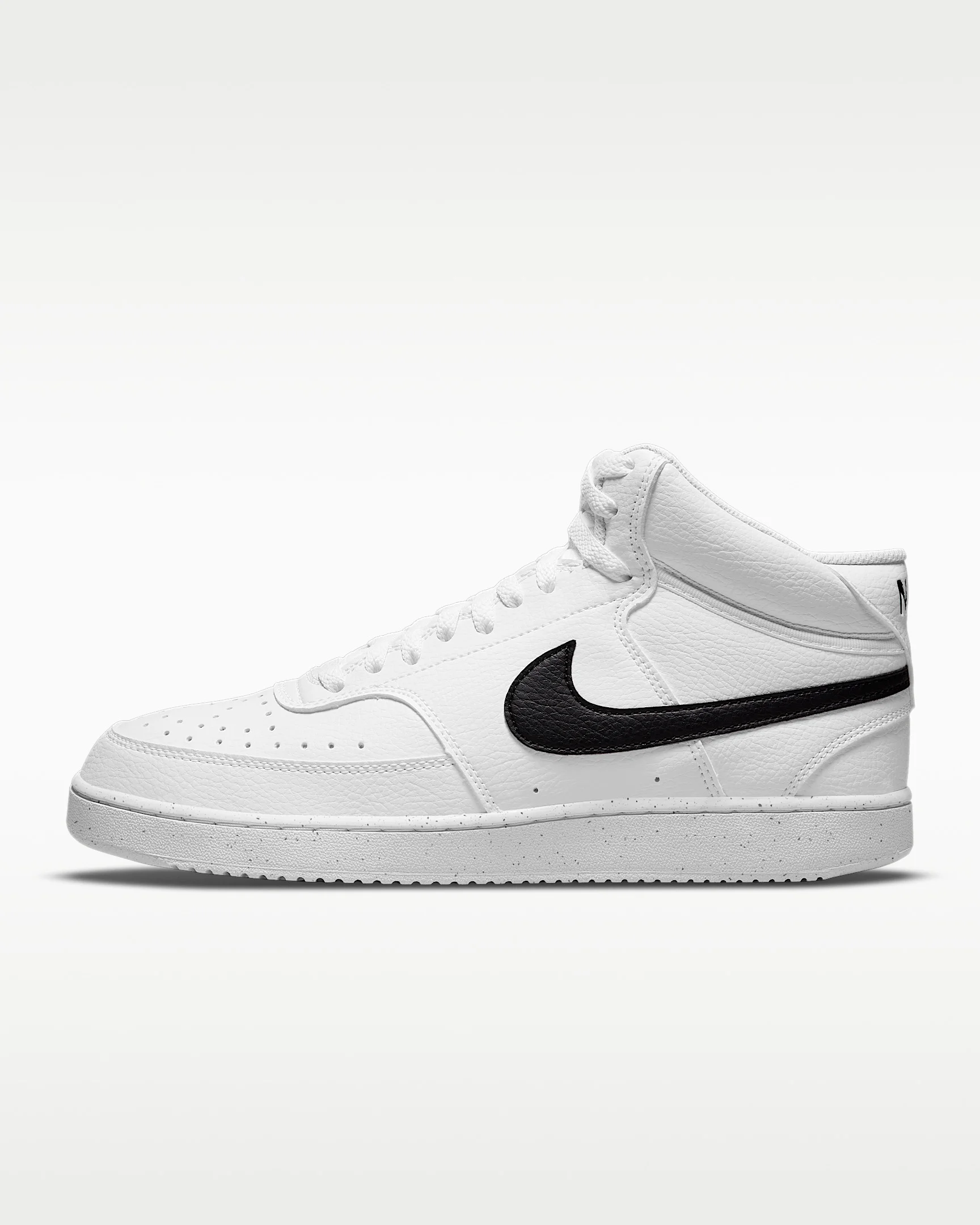 In love with the classic look of '80s basketball but have a thing for the fast-paced culture of today's game? Meet the Nike Court Vision Mid. A classic remixed with at least 20% recycled materials by weight. We replaced leather with recycled and synthetic materials that keeps the soul of the original style. Its crisp upper and stitched overlays stays true to its origins. The plush collar keeps it sleek and comfortable for your world. Benefits - Made with at least 20% recycled material by weight. - Using synthetic materials, the design features materials that echo mid-1980s basketball shoes. - Padded collar looks sleek and feels great while the perforations on the toe and sides add comfort and breathability. Product Details - Shown: White/White/Black - Style: DN3577-101