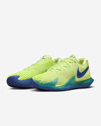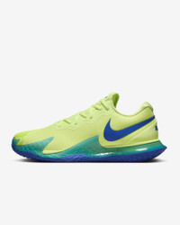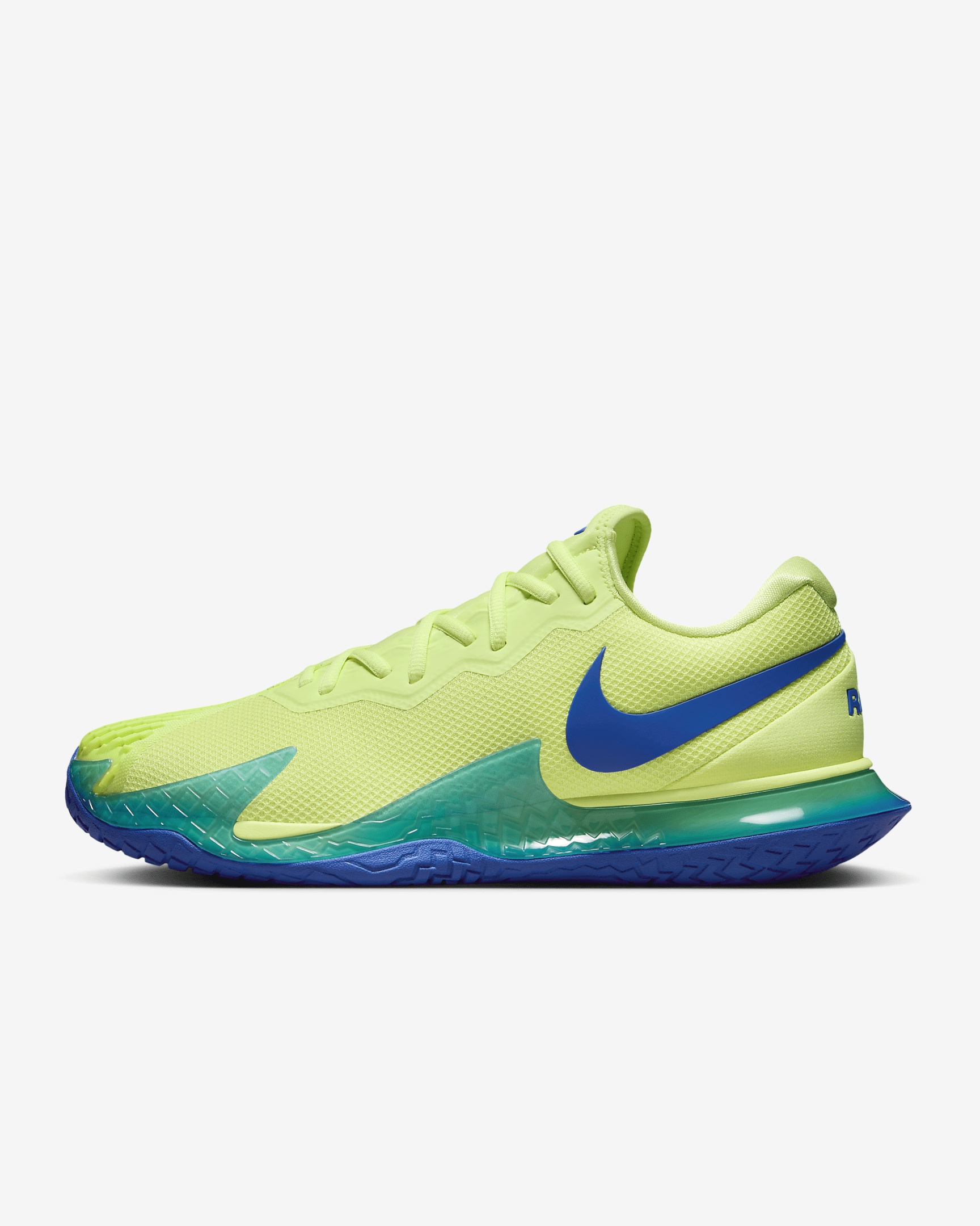 Innovated to withstand your toughest matches, this updated design puts flexible, durable materials exactly where they're needed most. Signature Rafael Nadal details let you rep your favorite player while you run the court. More Benefits - Stiff frame on the lateral side creates a stable feel during side-to-side movements. - 1/2-length sleeve gives you a sock-like fit. - Designed for use on hard court surfaces. Product Details - Removable insole - Shown: Light Lemon Twist/Light Photo Blue/Game Royal - Style: DD1579-700
