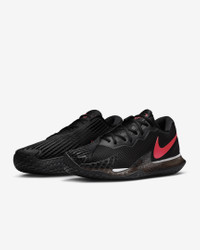 Innovated to withstand your toughest matches, this updated design puts flexible, durable materials exactly where they're needed most. Signature Rafael Nadal details let you rep your favorite player while you run the court. More Benefits - Stiff frame on the lateral side creates a stable feel during side-to-side movements. - 1/2-length sleeve gives you a sock-like fit. - Designed for use on hard court surfaces. Product Details - Removable insole - Shown: Black/Barely Grape/Siren Red - Style: DD1579-003