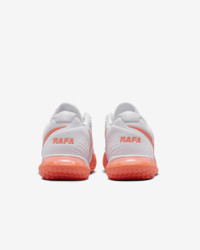 Innovated to withstand your toughest matches, this updated design puts flexible, durable materials exactly where they're needed most. Signature Rafael Nadal details let you rep your favorite player while you run the court. More Benefits - Stiff frame on the lateral side creates a stable feel during side-to-side movements. - 1/2-length sleeve gives you a sock-like fit. - Designed for use on hard court surfaces. Product Details - Removable insole - Shown: White/White/Bright Mango - Style: DD1579-106
